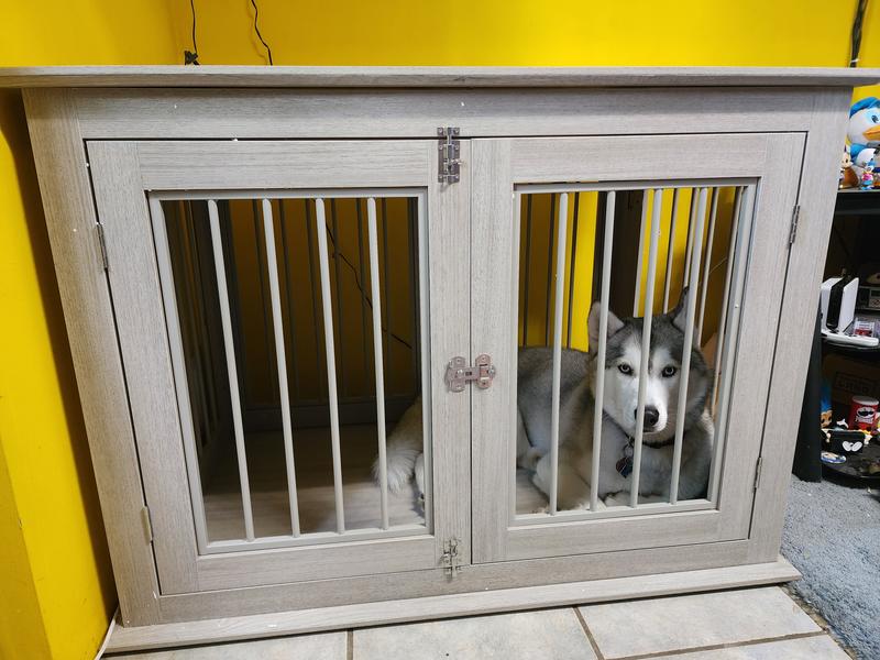 FRISCO Double Door Wood & Metal Furniture Style Dog Crate, Gray, Large, 42 inch Frisco Double Door Wood & Metal Furniture Style Dog Crate New age pet ecoflex pet crate; the unique design provides your dog with a crate. best for large dogs: Midwest homes for pets newly. our furniture style dog crate with two drawers and two doors has a chic and versatile design. Frisco Double Door Wood & Metal Furniture Style Dog Crate.